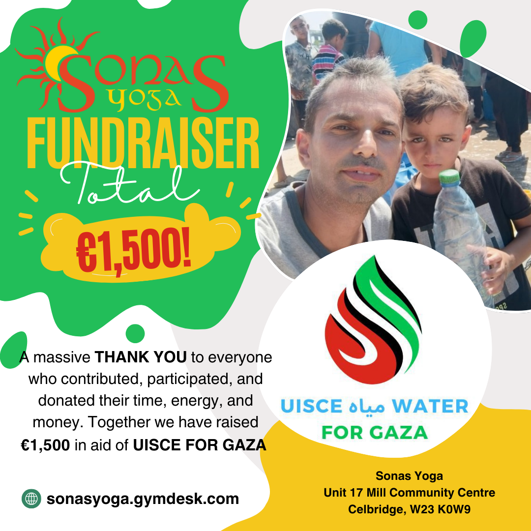 We are filled with gratitude for the outpouring of support and generosity generated by our Fundraising Day on 3 December. Together, we raised €1,080 for the Irish Red Cross Urgent Appeal for the Humanitarian Crisis in Gaza. Huge thanks to our growing Sonas Yoga Community: whether you joined us in body or in spirit, you helped to make the day feel like a ray of hope. Our raffle winner was Gill Wall - she won the luxury Casmara Infinity limited edition skincare hamper, kindly donated by Susan Fox. Humble thanks to all the teachers who kindly donated their time on the day and shared their practice with so many.
